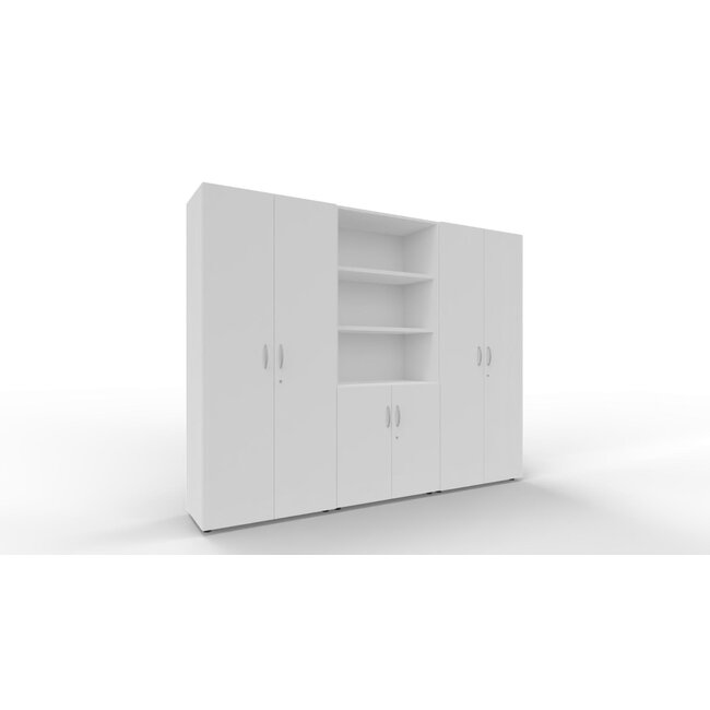 Ob für Akten, Bücher oder einfach alles, was im Büro einen festen Platz braucht – die Schrankwand P2 mit 5 Ordnerhöhen bringt Struktur in den Alltag. Mit einer Breite von 240 cm und einer Höhe von 185 cm bietet sie jede Menge Stauraum, ohne dabei wuchtig zu wirken. Ideal fürs Büro, für Besprechungsräume oder fürs Archiv.